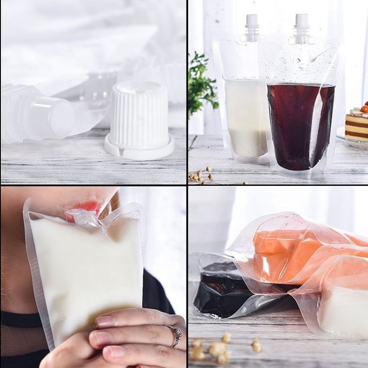 Ağızlı Ayaklı Poşet, bir başlık ve kendinden destekli bir torbadan oluşur; kendinden destekli çanta, kompozit malzemelerden oluşur ve ağızlık, plastikten yapılmış bir şişe ağzıdır.